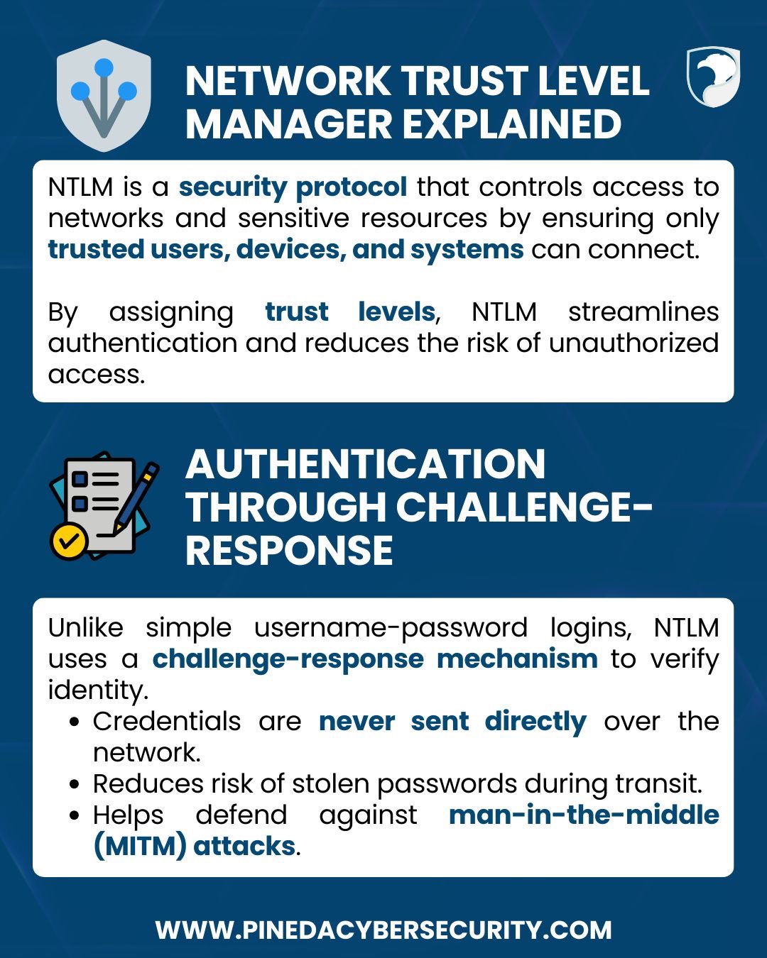 #PinedaCybersecurity #CyberSecurityMakesSenseHere #PCSCyberEd #CybersecurityBasics #NTLM #AccessControl #Authentication #InfoSec #CyberAwareness #NetworkSecurity